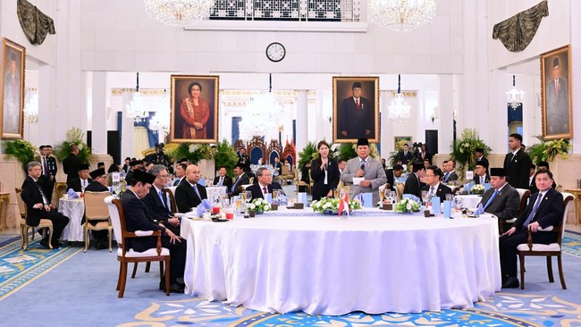 Presiden Prabowo Subianto dan Perdana Menteri (PM) China Li Qiang menikmati jamuan makan siang dalam rangkaian agenda bilateral di Istana Kepresidenan Jakarta. Berbagai hidangan nusantara pun disajikan dalam acara kenegaraan tersebut.