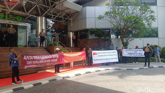Pantauan detikcom, Selasa (27/5/2025), ASN menggelar demo di depan lobi Gedung BJ Habibie. Mereka menggelar orasi dan membentangkan sejumlah spanduk tuntutan.