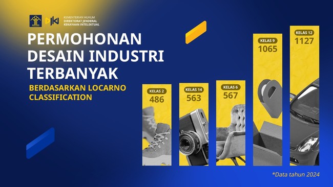 "Peningkatan ini juga didorong oleh transformasi digital yang diterapkan DJKI dalam layanan pendaftaran kekayaan intelektual, serta upaya peningkatan kesadaran publik melalui berbagai kanal edukasi, terutama di lingkungan kampus," ujar Pemeriksa Desain Industri Madya DJKI Rizki Harit Maulana, dalam keterangan tertulis, Selasa (27/5/2025).