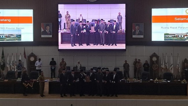 Penyerahan dilakukan dalam rapat paripurna DPRD Provinsi Banten di Kota Serang, Selasa (27/5/2025). Ketua DPRD Banten Fahmi Hakim turut hadir dalam rapat tersebut.