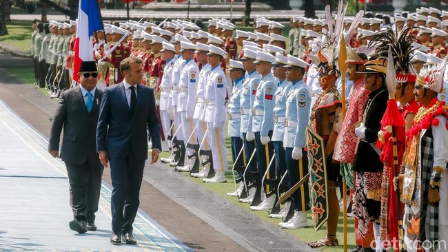 Presiden RI Prabowo Subianto menyambut kedatangan Presiden Prancis Emmanuel Macron dan delegasi dalam kunjungan kenegaraannya di Indonesia. Prabowo menganggap kunjungan Macron sebagai kehormatan besar.