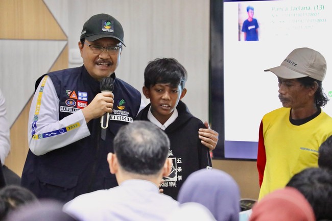 Salah satu calon siswa, Panca Jaelana (13), membacakan Pancasila dengan percaya diri dan menyampaikan cita-citanya menjadi pemain sepak bola profesional. Gelak tawa dan keakraban muncul ketika Gus Ipul menanggapi dengan canda dan dukungan moral untuk mencairkan suasana.