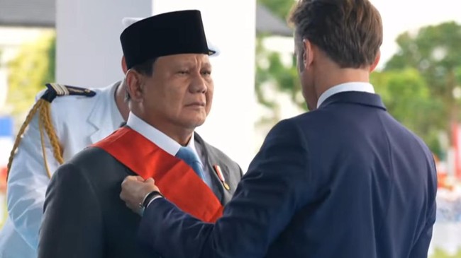 Pemberian penghargaan itu dilakukan seusai upacara penyambutan di Akademi Militer (Akmil) Magelang, Kamis (29/5/2025). Macron awalnya memberikan keterangan menggunakan bahasa Prancis.