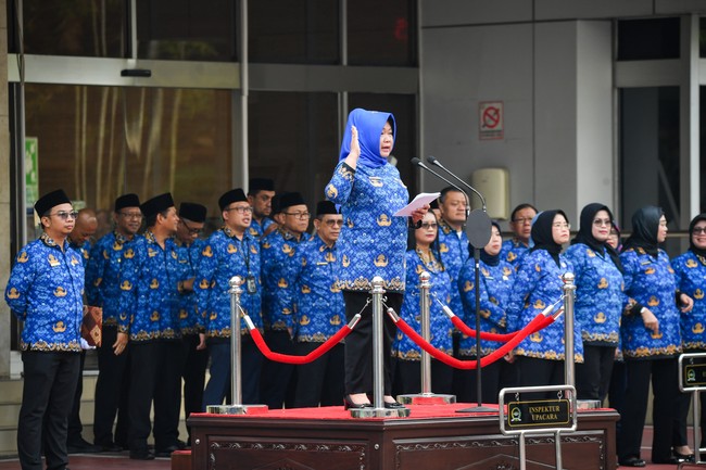Sekretaris Jenderal MPR RI Siti Fauziah menjadi Pembina Upacara dalam Peringatan Hari Lahir Pancasila 1 Juni di Halaman Gedung Sekretariat Jenderal DPR-RI, Komplek Parlemen Senayan, Jakarta, hari ini.
