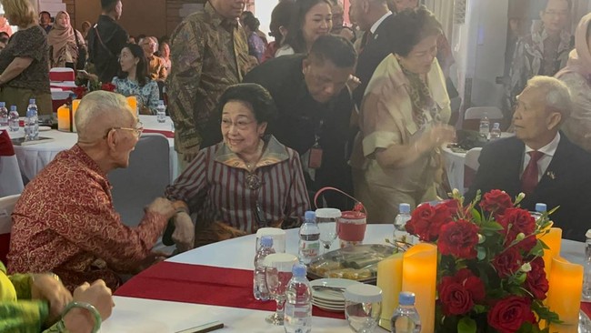 Pantauan detikcom di lokasi, Sabtu (7/6/2025), Megawati Soekarnoputri tiba di Galeri Nasional, Jakarta Pusat, Indonesia pukul 11.05 WIB. Megawati langsung memasuki ruang acara dan menyalami tamu undangan.