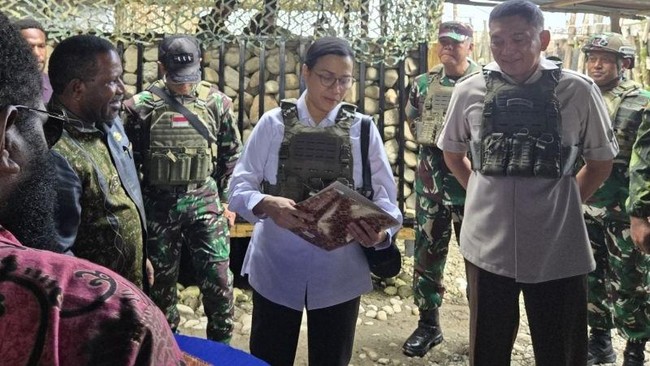 Menteri Pertahanan (Menhan) Sjafrie Sjamsoeddin dan Menteri Keuangan (Menkeu) Sri Mulyani Indrawati melakukan kunjungan kerja ke Distrik Kenyam, Kabupaten Nduga, Papua Pegunungan. Keduanya mengenakan rompi anti peluru saat meninjau kondisi para prajurit TNI di garda terdepan.