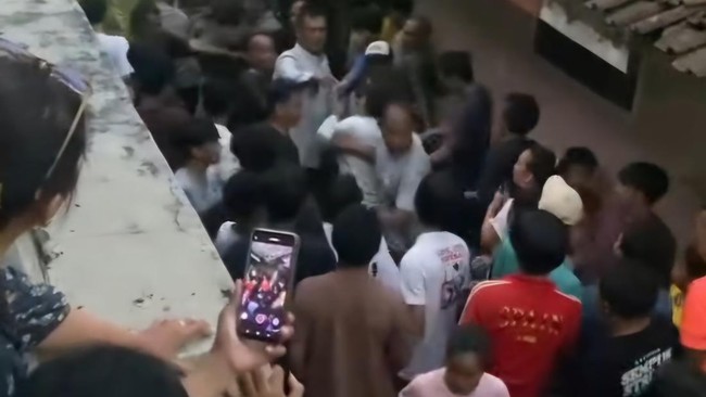 Pria itu tampak sedang diinterogasi orang-orang yang mengerumuninya dan sempat menjelaskan sesuatu. Sejumlah warga terdengar langsung menyoraki dan memakinya mendengar pengakuan pelaku.