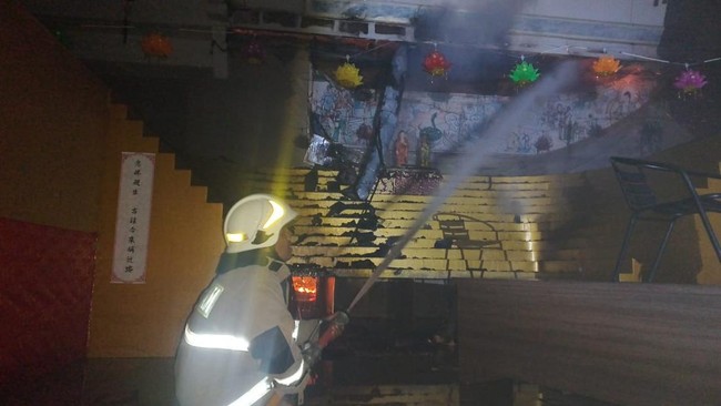 "Kronologi, Pak Dimas sedang tidur mendengar suara seperti hujan 'pletek, pletek'. Kemudian melihat kebakaran plafon altar api sudah membesar. Kemudian turun ke lantai bawah untuk melapor ke Pak Haji," katanya.