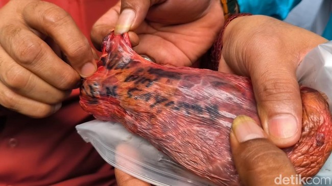 Warga Pondok Betung, Pondok Aren, Kota Tangerang Selatan (Tangsel), dibuat heboh oleh penemuan potongan paru sapi kurban bertuliskan nama seseorang. Begini penampakan paru sapi tersebut.