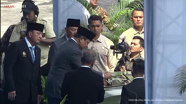 Peluncuran itu dilakukan usai Prabowo membuka acara Indonesia Defence 2025 di Jiexpo, Kemayoran, Jakarta Pusat, Rabu (12/6/2025). Dalam peluncuran ini, Prabowo disampingi Menko Polkam Budi Gunawa dan Menhan Sjafrie Sjamsoeddin.
