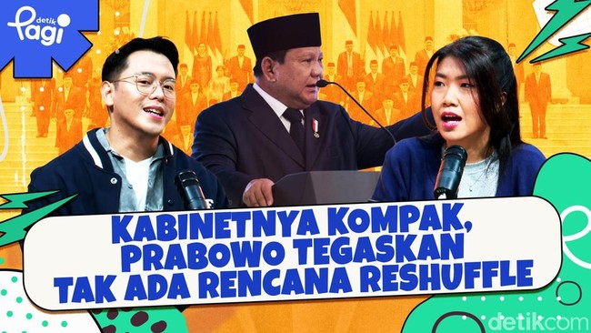 Presiden Prabowo Subianto menegaskan belum ada rencana untuk melakukan reshuffle kabinet dalam waktu dekat. Prabowo menilai menterinya sejauh ini bekerja dengan baik.