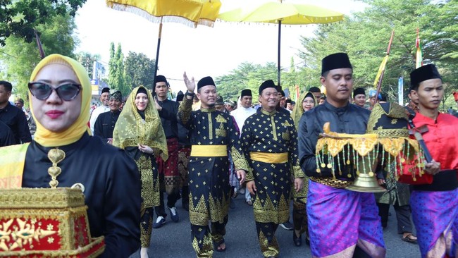 Selanjutnya dengan pawai bersama hampir 10 ribu masyarakat dan pelajar dari Rumah Dinas Wali Kota Jalan Ahmad Yani menuju Kantor LAM Pekanbaru di Jalan Senapelan. Terlihat dalam rangkaian penampilan tradisi khas Melayu seperti silat, tukar tepak hingga lempar beras kunyit.