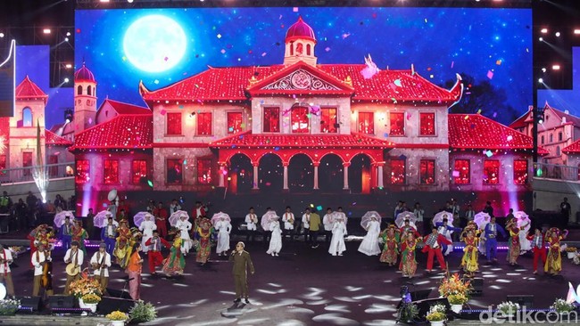 Panggung ini semakin semarak karena deretan ondel-ondel yang menjadi background panggung acara. Nuansa kental kebudayaan Betawi pun kian terasa.