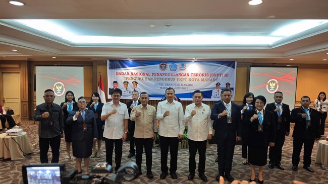 Kepala Badan Nasional Penanggulangan Terorisme (BNPT), Eddy Hartono mengukuhkan pengurus Forum Koordinasi Pencegahan Terorisme (FKPT) Kota Manado masa bakti 2025- 2027. Pengukuhan ini dilakukan dalam rangka memperkuat ketahanan masyarakat Manado dari pengaruh paham radikal terorisme.