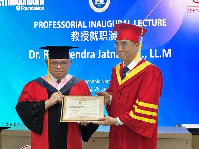 Fujian Polytechnic Normal University melalui sidang senat akademiknya menetapkan pemberian gelar profesor honoris causa kepada Prof. (H.C.) Dr. R. Narendra Jatna berdasarkan sejumlah pertimbangan akademis dan profesional, antara lain: