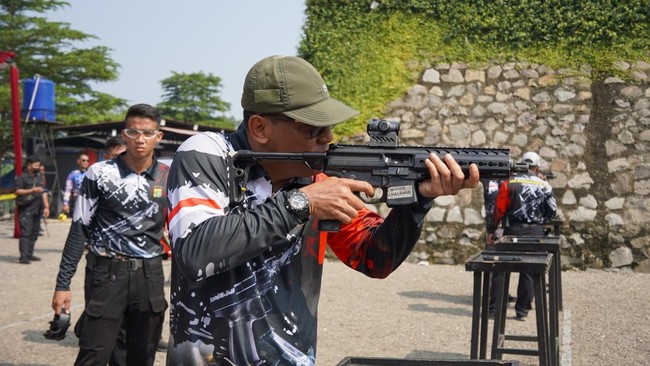 Kejuaraan menembak Kapolda Cup 2025 berlangsung di Lapangan Tembak Batalyon C Pelopor, Tangerang, pada Rabu (25/6/2025). Perlombaan dibuka oleh Kepala SPN Polda Metro Jaya ditandai dengan tembakan simbolis ke sasaran.