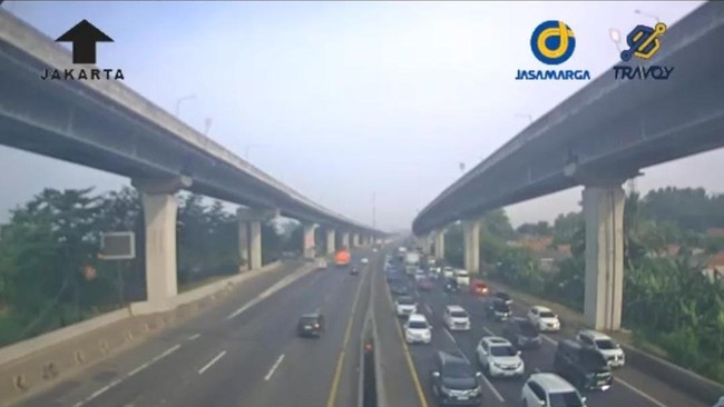 Sementara itu, lalu lintas tol Cikampek arah Jakarta terpantau lancar. "08.14 WIB #Tol_Japek Cikampek - Dawuan - Cikarang - Cikunir - Cawang LANCAR," jelas Jasamarga.