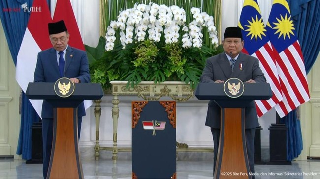 "Dalam pertemuan saya dengan Perdana Menteri Anwar Ibrahim tadi kita membahas secara intens masalah-masalah bilateral dua negara, juga masalah regional Asean dan juga masalah global. Kita tukar pandangan dan hampir semua hal pandangan Indonesia dan Malaysia sama, kita punya pandangan yang sama menghadapi masalah-masalah tersebut," jelas Prabowo.