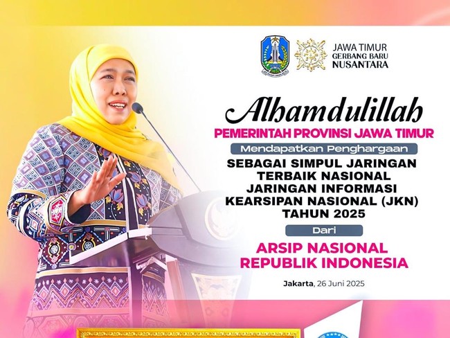 "Saat ini Jawa Timur juga terus meningkatkan pemanfaatan teknologi informasi serta memperluas integrasi arsip dari perangkat daerah ke dalam SIKN," ujar Khofifah dalam keterangan tertulis, Senin (30/6/2025).