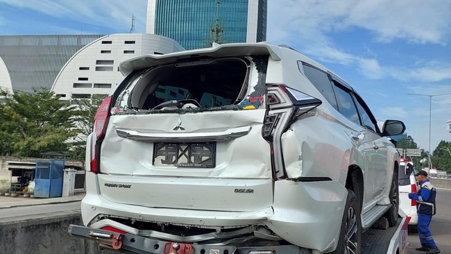 Kecelakaan lalu lintas melibatkan truk dan kendaraan Mistubishi Pajero terjadi di Jalan Tol Kebon Bawang, Jakarta Utara (Jakut). Pajero tersebut ditabrak truk hingga ringsek.