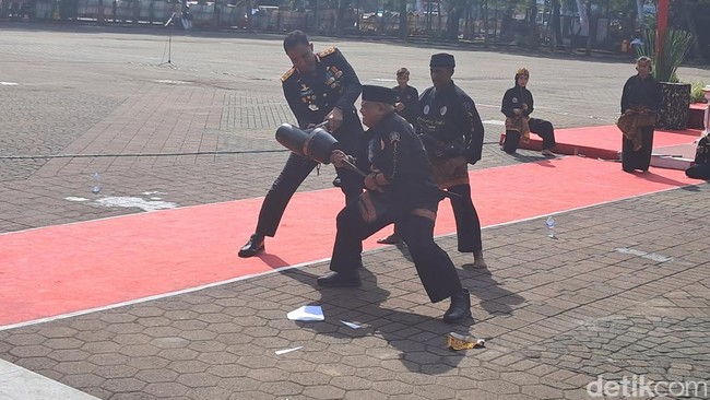 Polda Banten menggelar peringatan Hari Bhayangkara ke-79. Kapolda Banten Irjen Suyudi Ario Seto pun sempat menyanyi hingga menampilkan debus.
