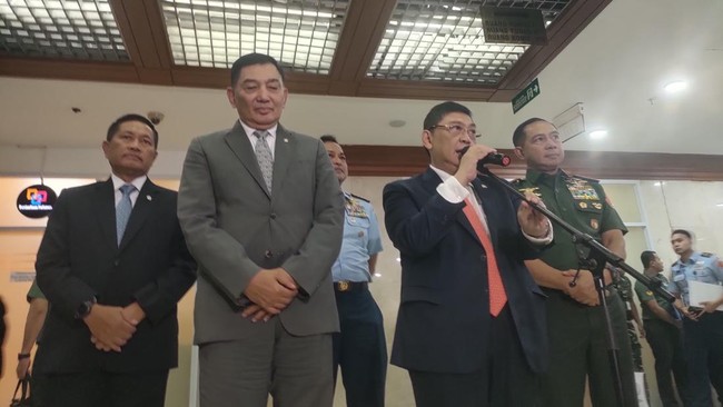 Selain Menhan, rapat dihadiri oleh Panglima TNI Jendral TNI Agus Subiyanto, KSAD Jenderal Maruli Simanjuntak, Wakasal Laksamana Madya TNI Erwin S Aldedharma hingga KSAU Marsekal TNI Tonny Harjono.