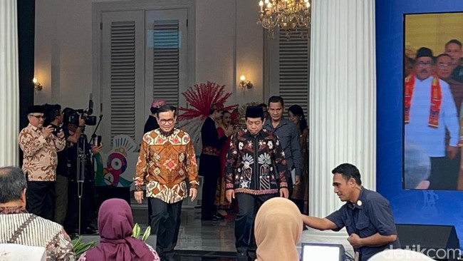 Pantauan detikcom di lokasi, Jumat (4/7/2025), Pramono tiba pada pukul 16.44 WIB. Pramono tampak mengenakan batik cokelat.