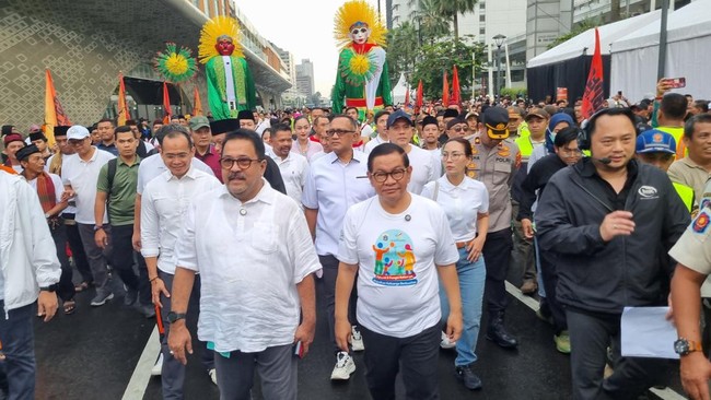 Gubernur DKI Jakarta, Pramono Anung, dan wakilnya, Rano Karno, menghadiri acara pertunjukan kolosal bertajuk 'Jakarta dalam Warna'. Kegiatan ini berlangsung di Bundaran HI, Jakarta Pusat, berbarengan dengan car free day (CFD).