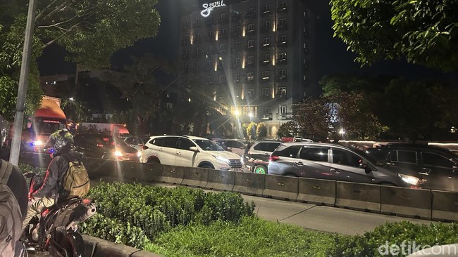 Tampak petugas kepolisian dan Satpol PP berada di lokasi membantu mengatur lalu lintas. Sementara arah sebaliknya, masih bisa dilalui kendaraan roda dua.