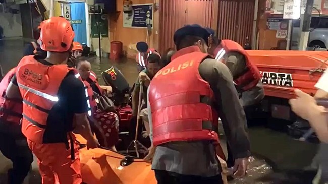"Batalyon A Pelopor Satuan Brimob Polda Metro Jaya menurunkan Patroli Tim Search and Rescue (SAR) untuk melakukan evakuasi warga yang terjebak banjir," kata kata Wadanyon A Pelopor Satuan Brimob Polda Metro Jaya, AKP Sunarto kepada wartawan, Minggu (6/7/2025).
