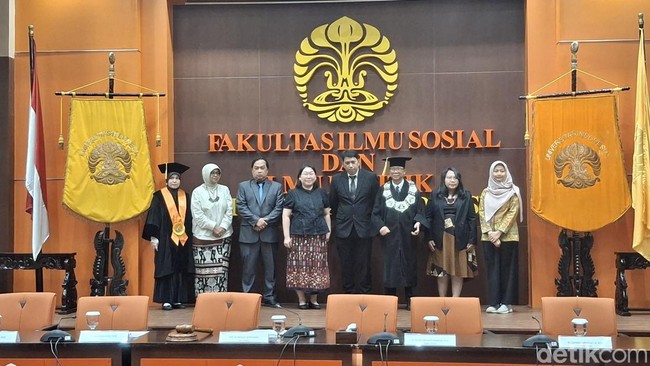 "Promotor yang diketuai Doktor Hendriani MSi telah mengajukan sejumlah keterangan mengenai pengembangan keahlian saudara, dan ketua Program Pasca Sarjana Ilmu Komunikasi Fisip UI telah pula melaporkan hasil ujian proposal hasil riset, hasil ujian riset dan ujian pra promosi. Berdasarkan semua itu, tim penguji Universitas Indonesia memutuskan, mengangkat saudara menjadi doktor dalam bidang ilmu komunikasi dengan yudicio memuaskan," kata Ketua Sidang prof. Dr Semiarto Aji Purwanto, Rabu (9/7/2025).