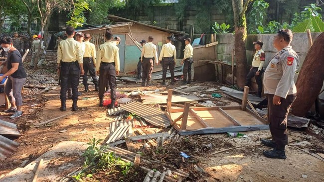 Penertiban dilakukan pada pagi tadi. Sebanyak 169 personel gabungan dikerahkan untuk menertibkan bangunan liar di lokasi tersebut.