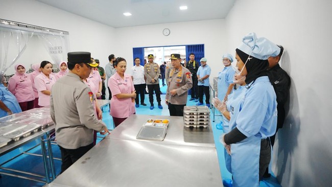 Kapolri Jenderal Listyo Sigit Prabowo meninjau fasilitas Satuan Pelayanan Pemenuhan Gizi (SPPG) Polrestabes Medan, Sumatera Utara. Jenderal Sigit mengecek langsung untuk memastikan penyaluran makanan bergizi gratis (MBG) di Medan berjalan dengan baik.