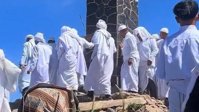 Sebuah video yang menampilkan rombongan orang berpakaian serba putih berada tugu di puncak Gunung Lawu viral di media sosial. Polisi mengungkap bahwa rombongan ini tengah melakukan ritual bulan Suro.