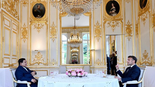 Presiden Prabowo Subianto memenuhi undangan makan malam bersama Presiden Prancis Emmanuel Macron di Istana Elysee Paris. Momen tersebut berlangsung hangat dan akrab.
