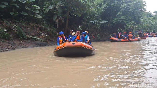 Setelah mengenakan alat pengaman, Andra mulai menyusuri Sungai Cibanten. Awalnya, sungai di sekitar Gedung Negara bersih, tapi makin ke hilir terlihat sampah makin banyak.