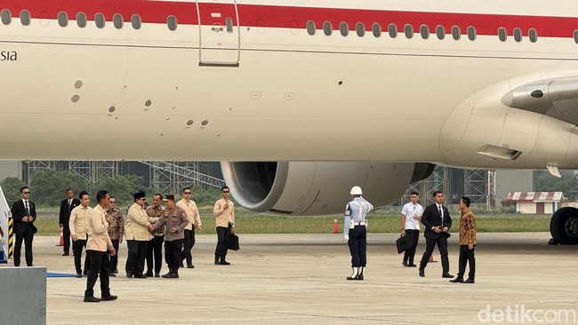 Pantauan detikcom, Rabu (16/7/2025), pesawat Garuda 1 PK-GIG yang ditumpangi Prabowo mendarat sekitar pukul 15.05 WIB. Tiba di Lanud Halim Perdanakusuma, Prabowo disambut Wapres Gibran Rakabuming Raka, Wakil Ketua DPR Sufmi Dasco Ahmad, Mensesneg Prasetyo Hadi, Menlu Sugiono, dan Kapolri Jenderal Listyo Sigit Prabowo.