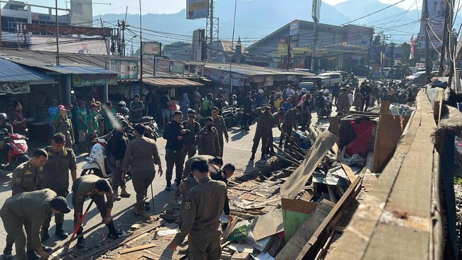 Kegiatan penertiban dimulai dengan apel bersama aparat gabungan. Dari 130 lapak, sebanyak 48 dibongkar karena melanggar aturan lingkungan.