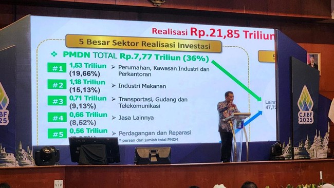 Lutfhi juga menyebut pertumbuhan ekonomi di Jateng berada di angka 4,96%. Dia mengatakan investasi di Jateng mayoritas berupa padat karya.