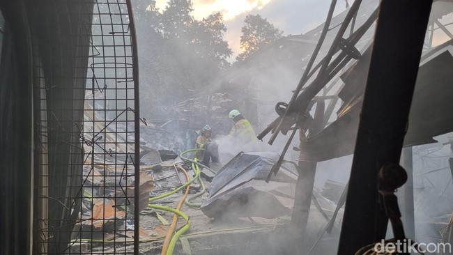Pantauan detikcom di lokasi, Selasa (29/7/2025) pukul 16.50 WIB, asap masih mengepul di bagian tengah pasar. Para petugas menyemprotkan air langsung ke titik yang masih terdapat api.