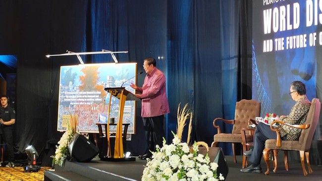 "Satu abad terakhir, kita kerap menyaksikan negara kuat jatuh, seolah-olah negara kuat jatuh lantaran pemimpinnya meletakkan dirinya atas pranata hukum, di atas sistem yang adil, dan di atas kesetiaan sejati terhadap negara dan rakyatnya," kata SBY dalam pidato peradaban World Disorder and The Future of Our Civilization di Menara Bank Mega, Jakarta Selatan, Rabu (30/7/2025).