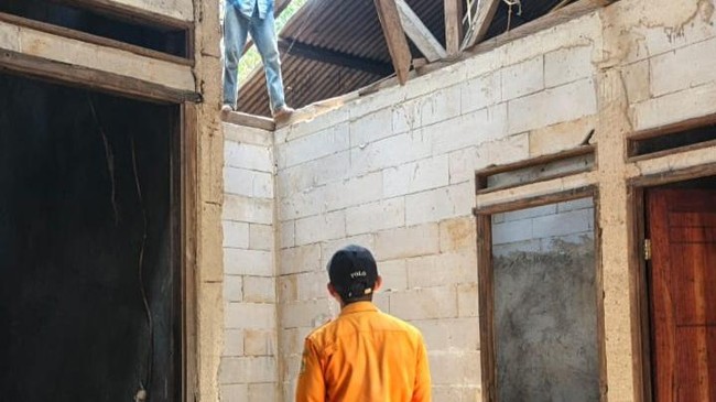 "Dikarenakan hujan dengan intensitas deras yang disertai angin kencang pada wilayah tersebut, sehingga mengakibatkan satu unit rumah warga mengalami kerusakan pada tembok bagian dapur dan kamar mandi jebol," kata Adam.