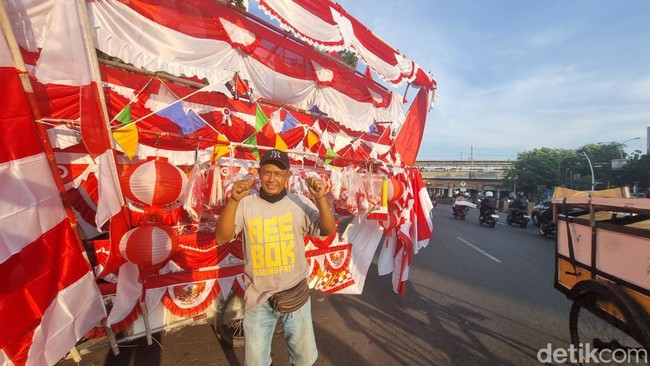"Pernah dulu saya dipesenin minta yang bendera background itu 100 meter," kata pedagang bendera, Jefri, saat ditemui di Matraman, Jaktim, Kamis (31/7/2025).