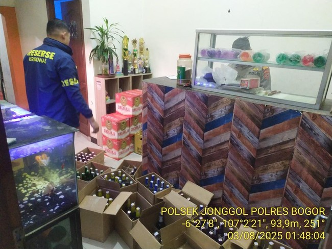 "Polsek Jonggol kembali menggelar Operasi Pekat (penyakit masyarakat) dengan sasaran miras di wilkum Polsek Jonggol. Petugas berhasil mengamankan sekitar 240 botol miras berbagai merek," kata Kapolsek Jonggol Kompol Hida Tjahyono, Minggu (3/8/2025).