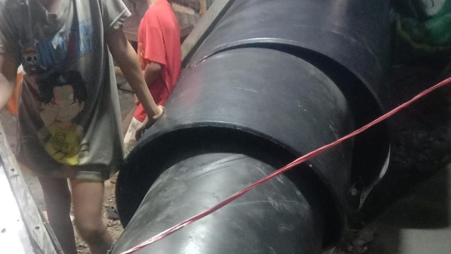 Dari rekaman video yang diperoleh detikcom, terlihat pipa tersebut berukuran jumbo.