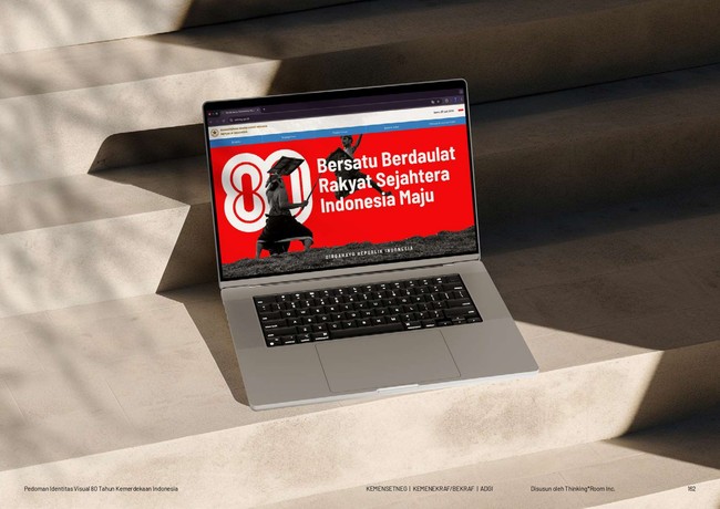 Seluruh pedoman lengkap terkait logo, background, tipografi, warna, hingga contoh penerapan dapat diakses melalui dokumen identitas visual HUT ke-80 RI 2025 yang tersedia di laman resmi https://hut80ri.setneg.go.id/.