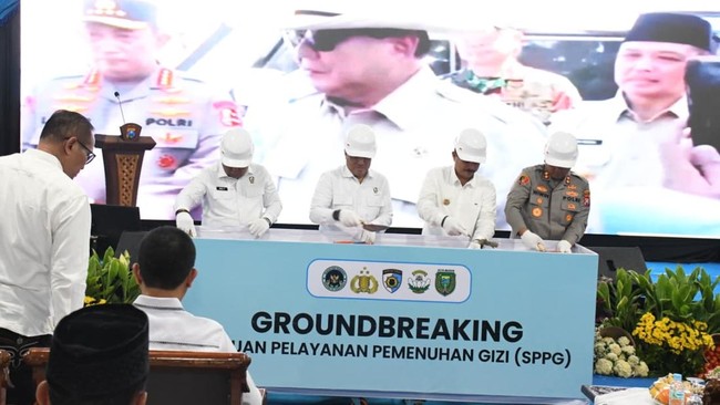 Kepolisian Republik Indonesia (Polri) melakukan peletakan batu pertama atau groundbreaking Satuan Pelayanan Pemenuhan Gizi (SPPG) Lapak Kampir, Kota Madiun. SPPG ini ditargetkan bisa memberikan layanan kepada 4.103 siswa penerima program Makan Bergizi Gratis (MBG).