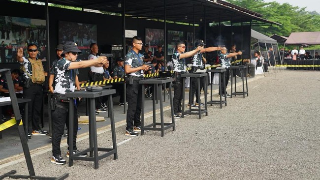 Kegiatan digelar di Lapangan Tembak Tatag Trawang Tungga Batalyon C Pelopor, Ciputat, Sabtu (9/8/2025). Kegiatan mempertandingkan dua nomor, yaitu menembak presisi jarak 25 meter dan dueling plate jarak 15 meter.