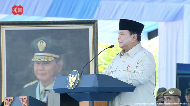 Hal itu disampaikan Prabowo dalam pidatonya dalam upacara Gelar Pasukan Operasional dan Kehormatan Militer di Lapangan Suparlan Pusdiklatpassus Batujajar, Bandung, Jawa Barat, Minggu (10/8/2025). Awalnya Prabowo mengapresiasi kerelaan prajurit TNI untuk berkorban demi negara.