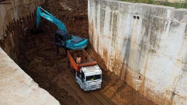 Pantauan detikcom, titik longsor di Jl Raden Saleh Danasasmita atau akses Stasiun Batutulis, Bogor Selatan, Kota Bogor masih dalam proses perbaikan. Satu unit alat berat tampak berada di lokasi dan digunakan untuk meratakan tanah.